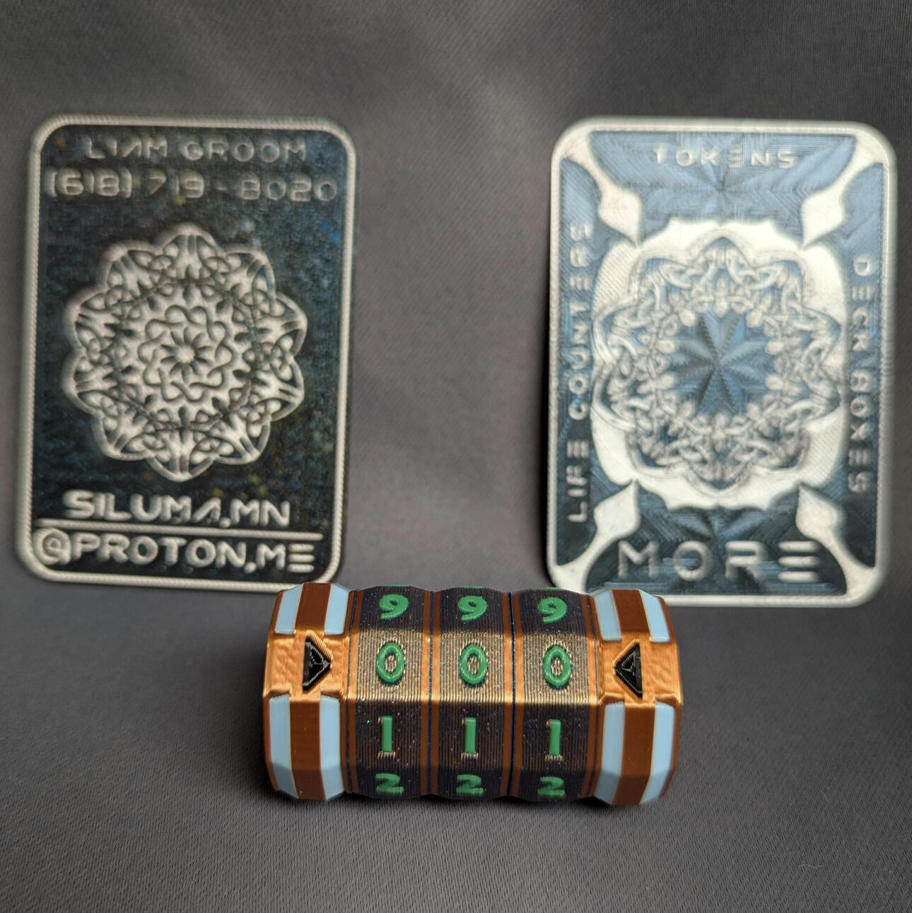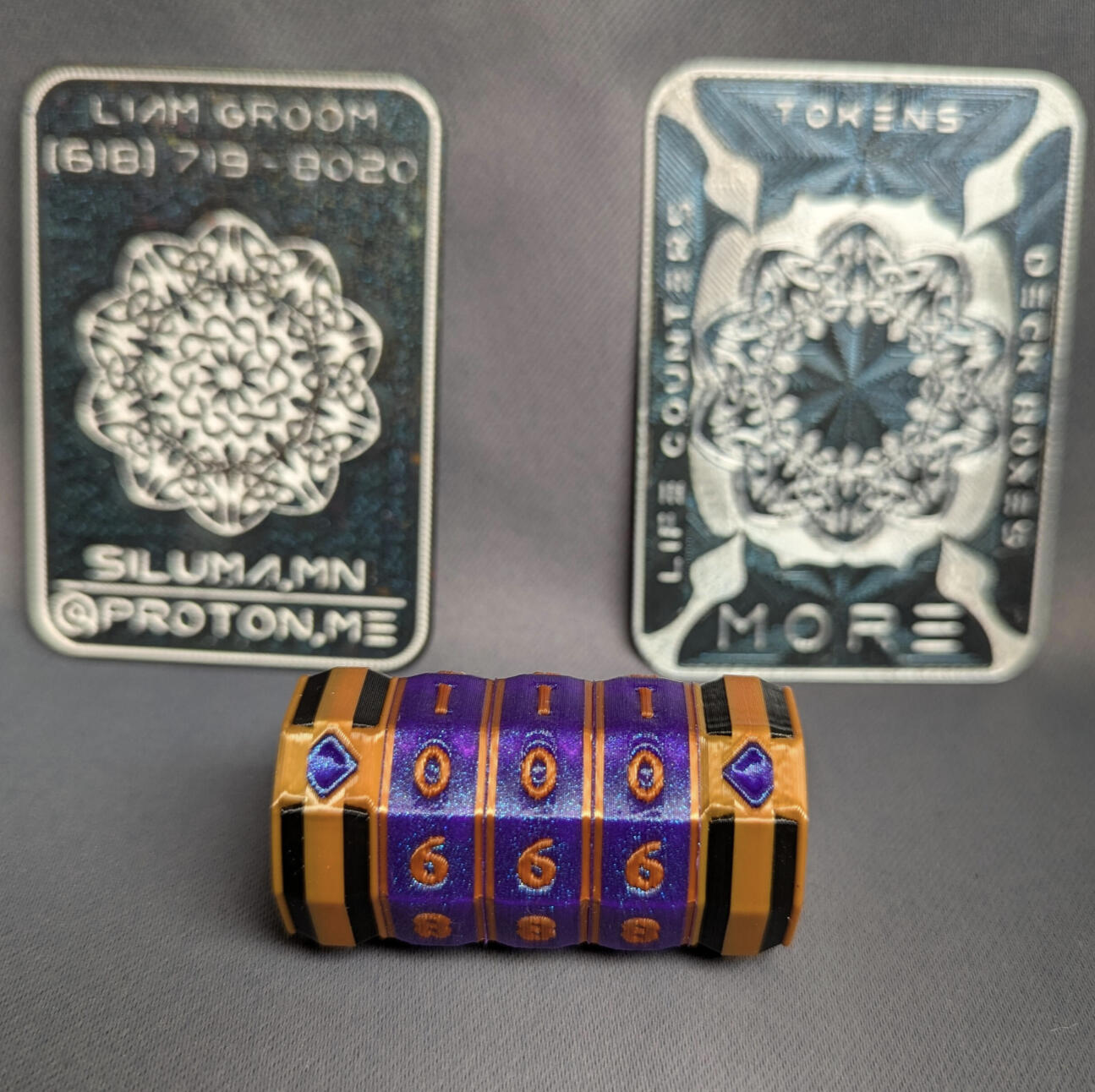 We produce and design generic life counters, deck boxes, and tokens for any TTRPG or Card game that tracks hit points or tokens. (Think: Magic: The Gathering, Warhammer 40k, Dungeons and Dragons, Digimon etc.)