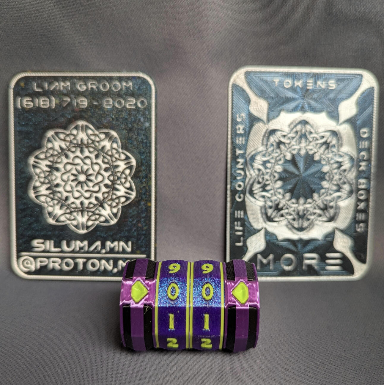 We produce and design generic life counters, deck boxes, and tokens for any TTRPG or Card game that tracks hit points or tokens. (Think: Magic: The Gathering, Warhammer 40k, Dungeons and Dragons, Digimon etc.)
